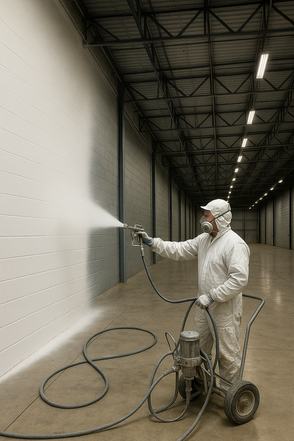 укрытие пола, колонн и оборудования защитной плёнкой;